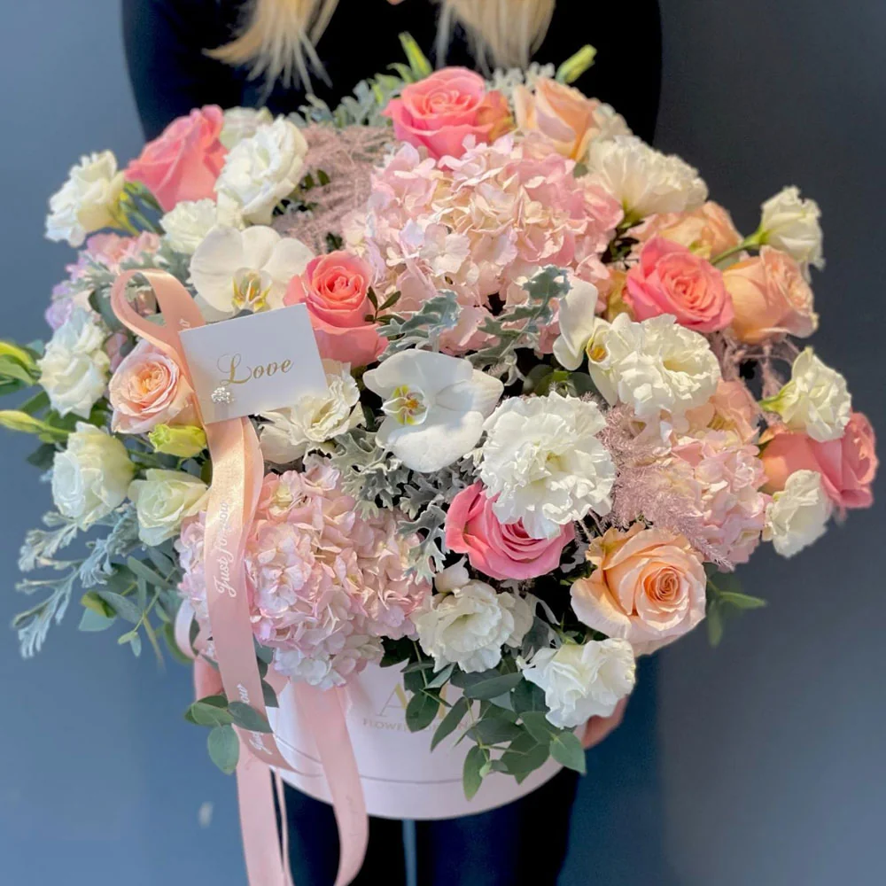 Te ofrecemos la entrega de ramos y flores en la sombrerera. Es una hermosa y elegante presentación de flores.